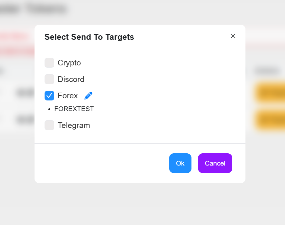 After creating a Master Token, you are asked to select Targets where the signals will be sent.