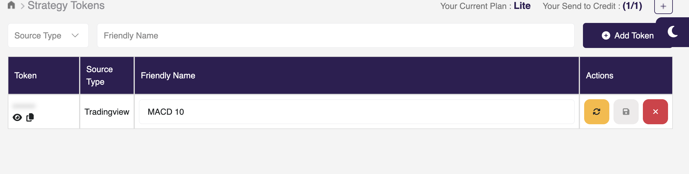 A Strategy Token defines how the system should interpret your chart signals (e.g., TradingView alerts) and convert them into actionable trading strategies.